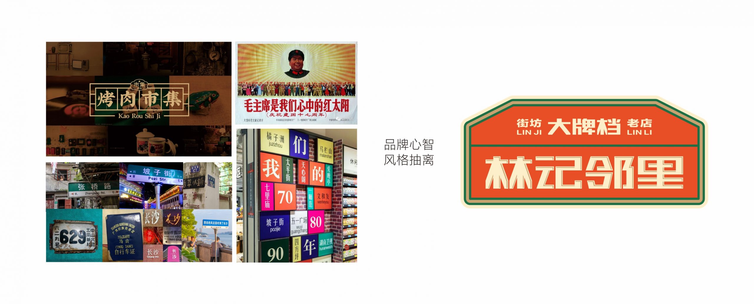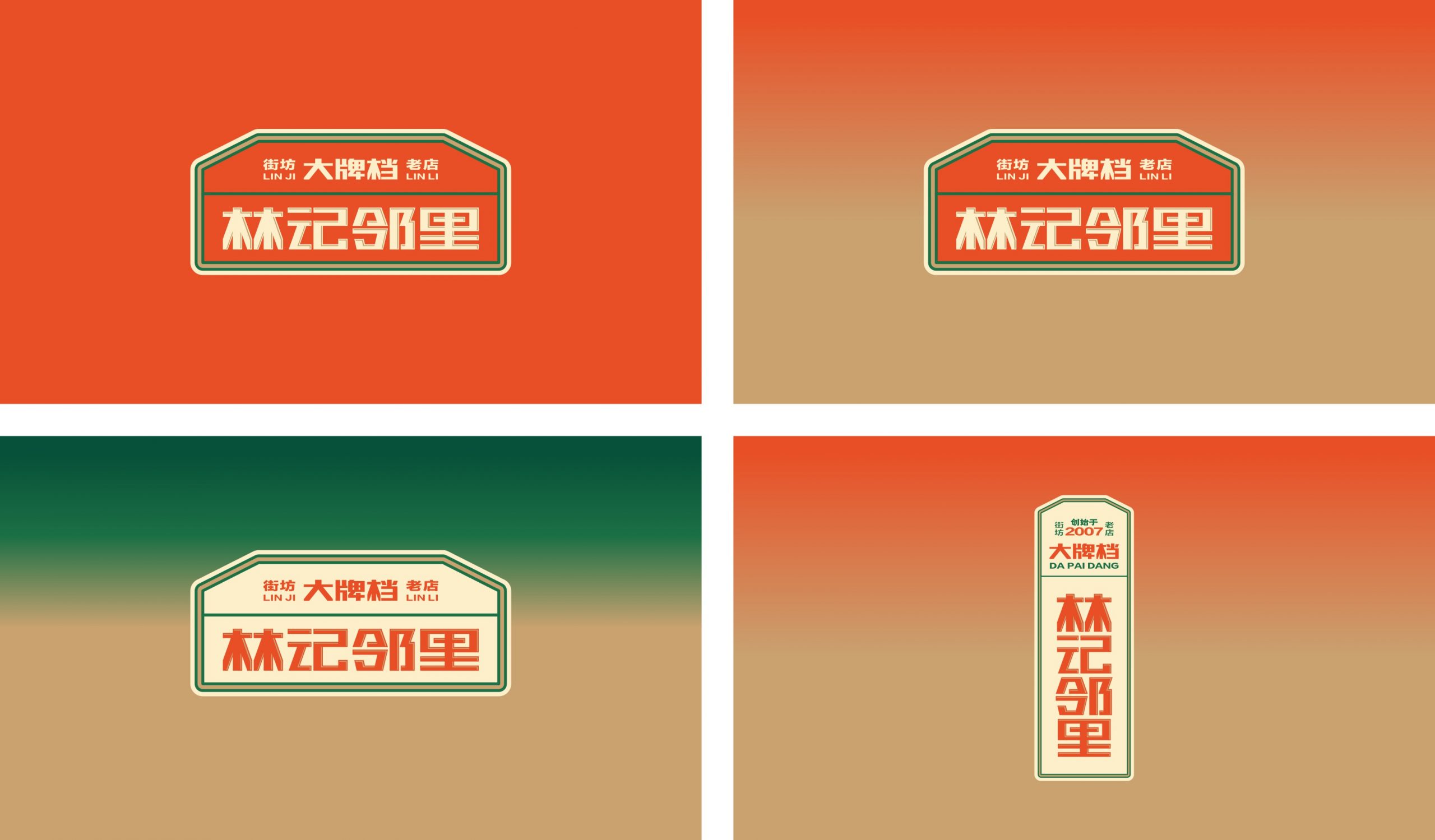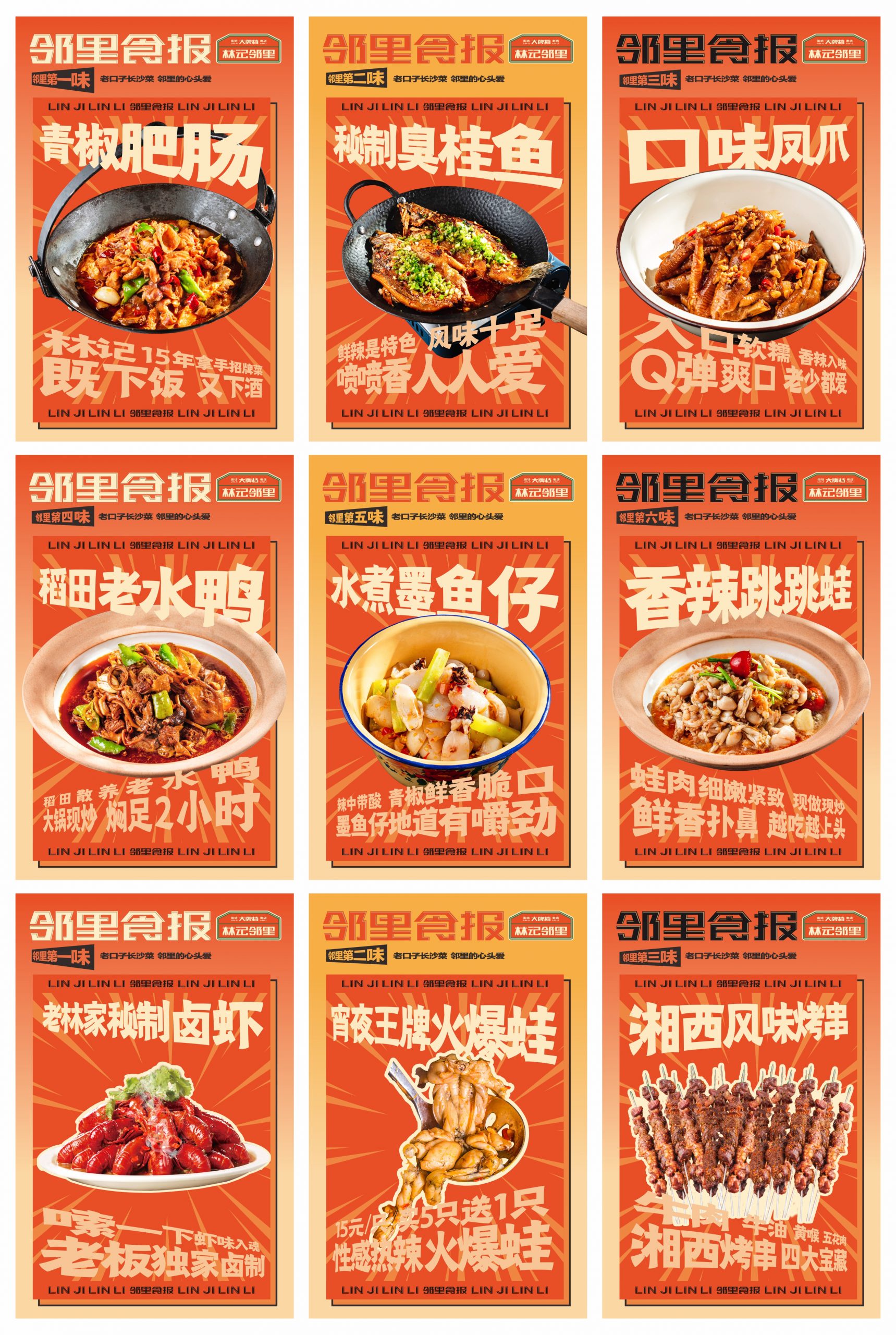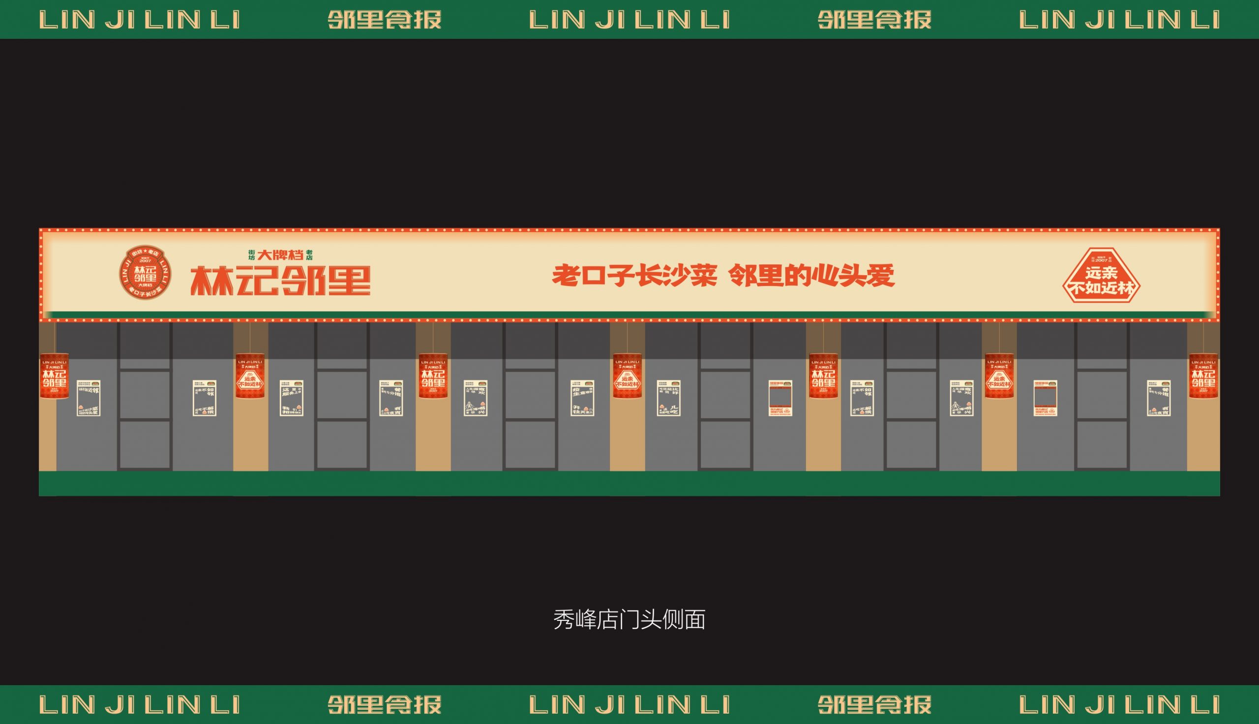 从品牌的社区餐饮商业定位出发,取用邻里文化,作为代表品牌社区餐饮的优势。借力所处商圈的商业优势,将林记的核心产品“家常菜”板块更换为“夜宵”,配合相对应的文化表达。结合品牌营中晚餐与夜宵的全时段经营特性,做出全面思考,为品牌准确定位林记邻里大牌档。