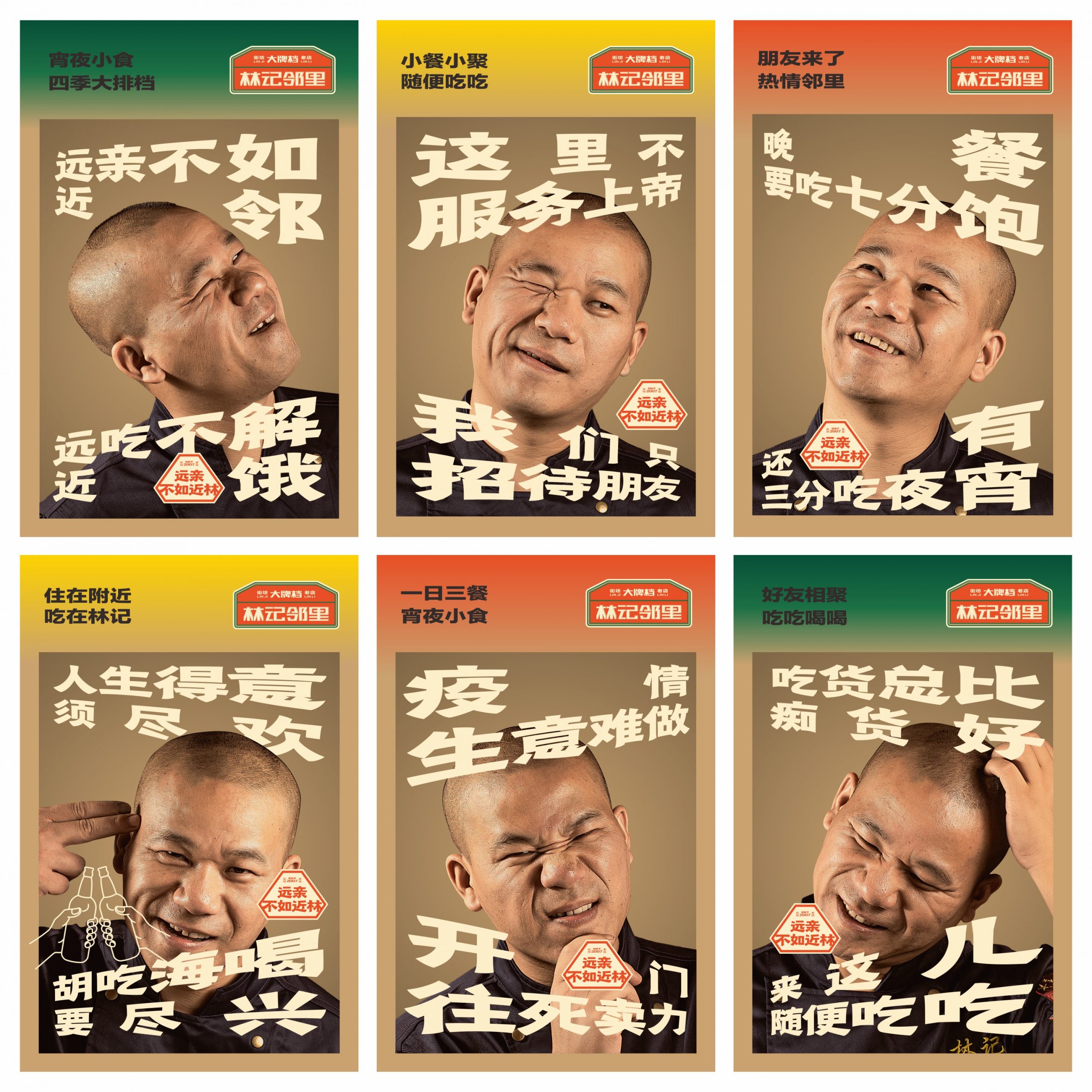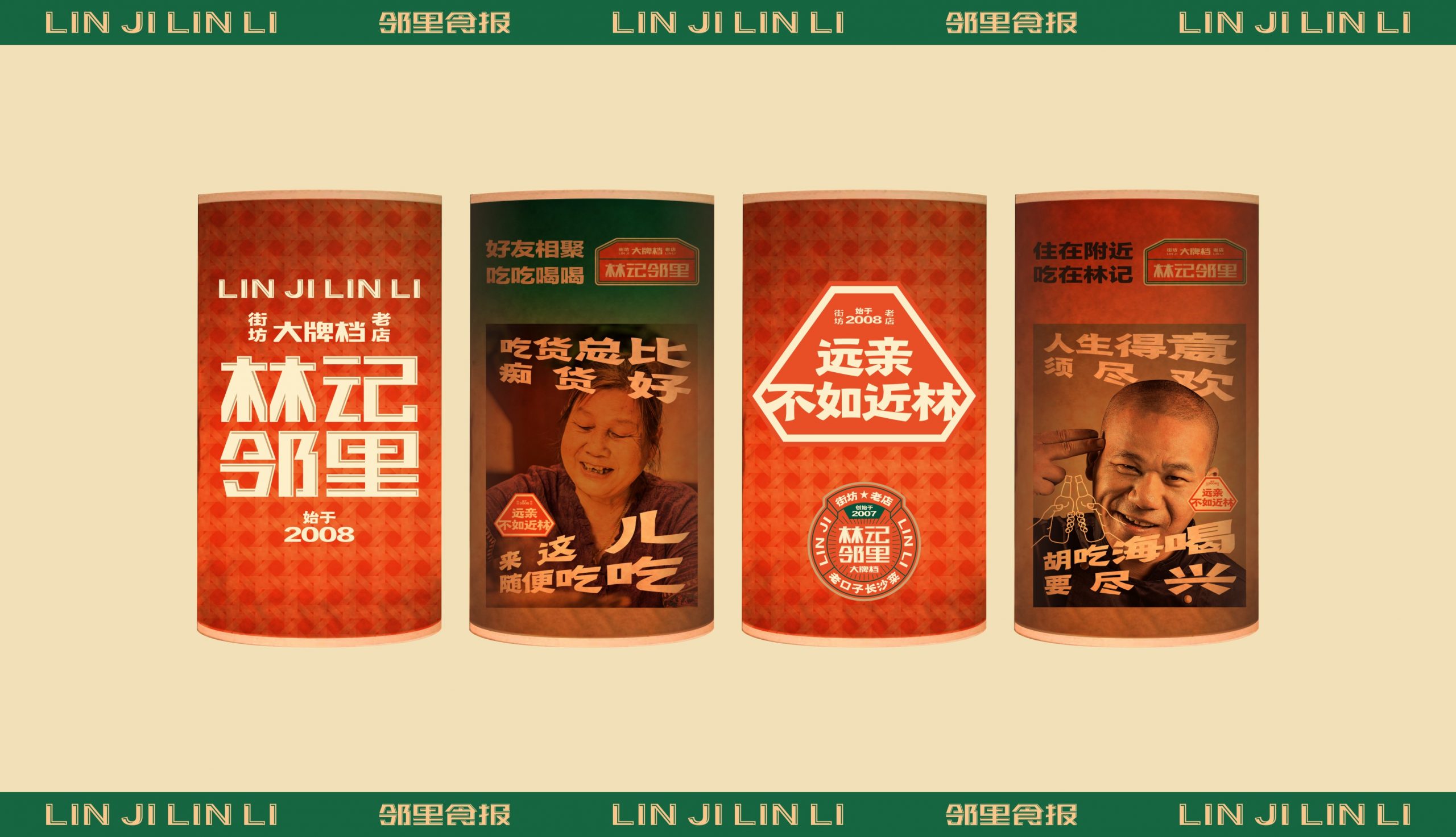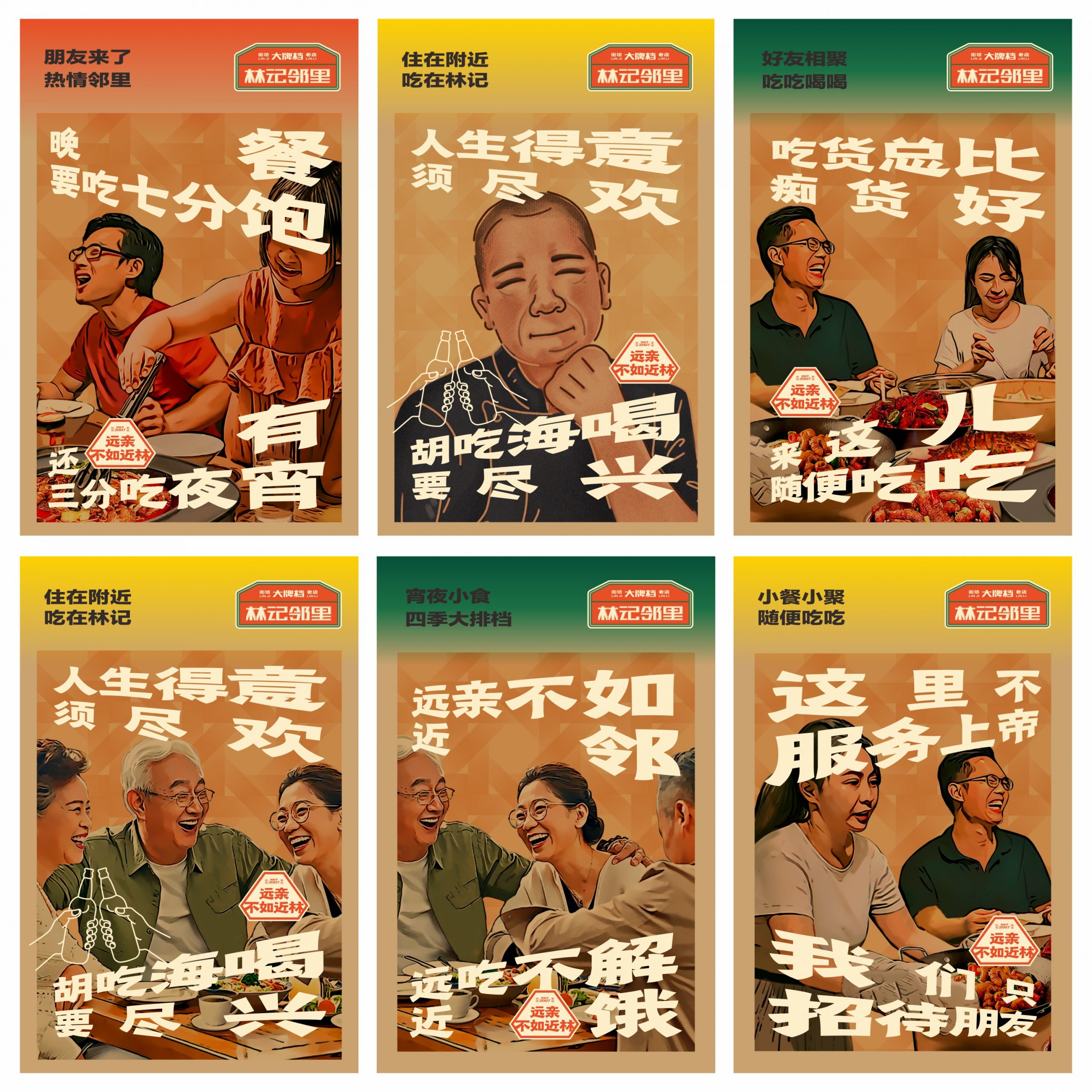 将传统民俗文化“远亲不如近邻”的价值语言结合林记的品牌印记,提出“远亲不如近林”的品牌主张。以其为核心,延展出“远吃不解近饿”、“远亲不如近邻”的价值文化语言。