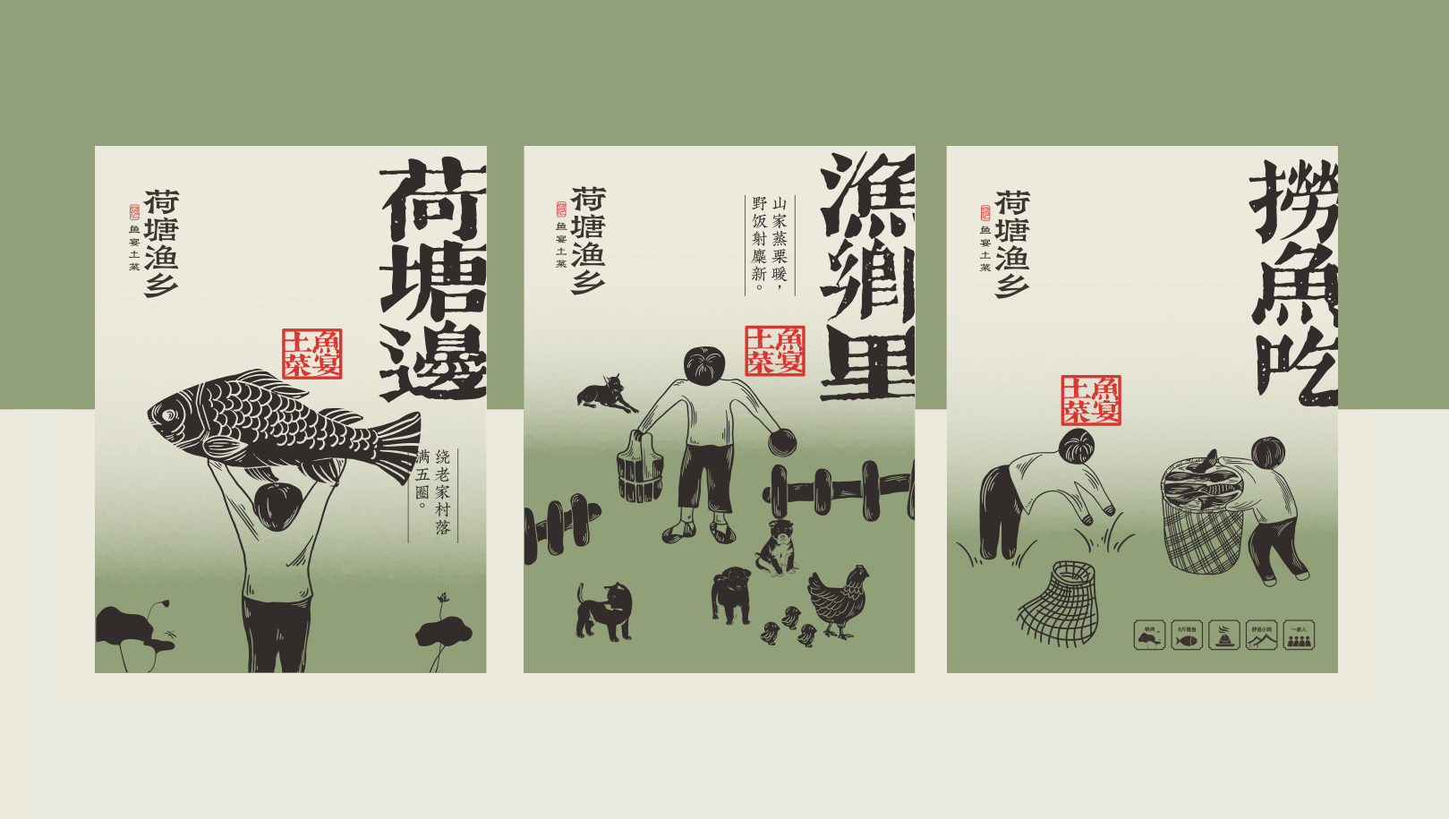 “荷塘边边的鱼宴土菜”,切入场景+产品,让消费者在享受美食的同时,感受商业与自然的同频共振,渲染一种自然恬静的用餐氛围。品牌SLOGAN“我家就在荷塘边”帮助品牌在初创阶段解释品牌定位,与其他土菜、家常菜品牌产生区隔,通过自然意象与地域信息,唤起潜在消费者的情感共鸣。