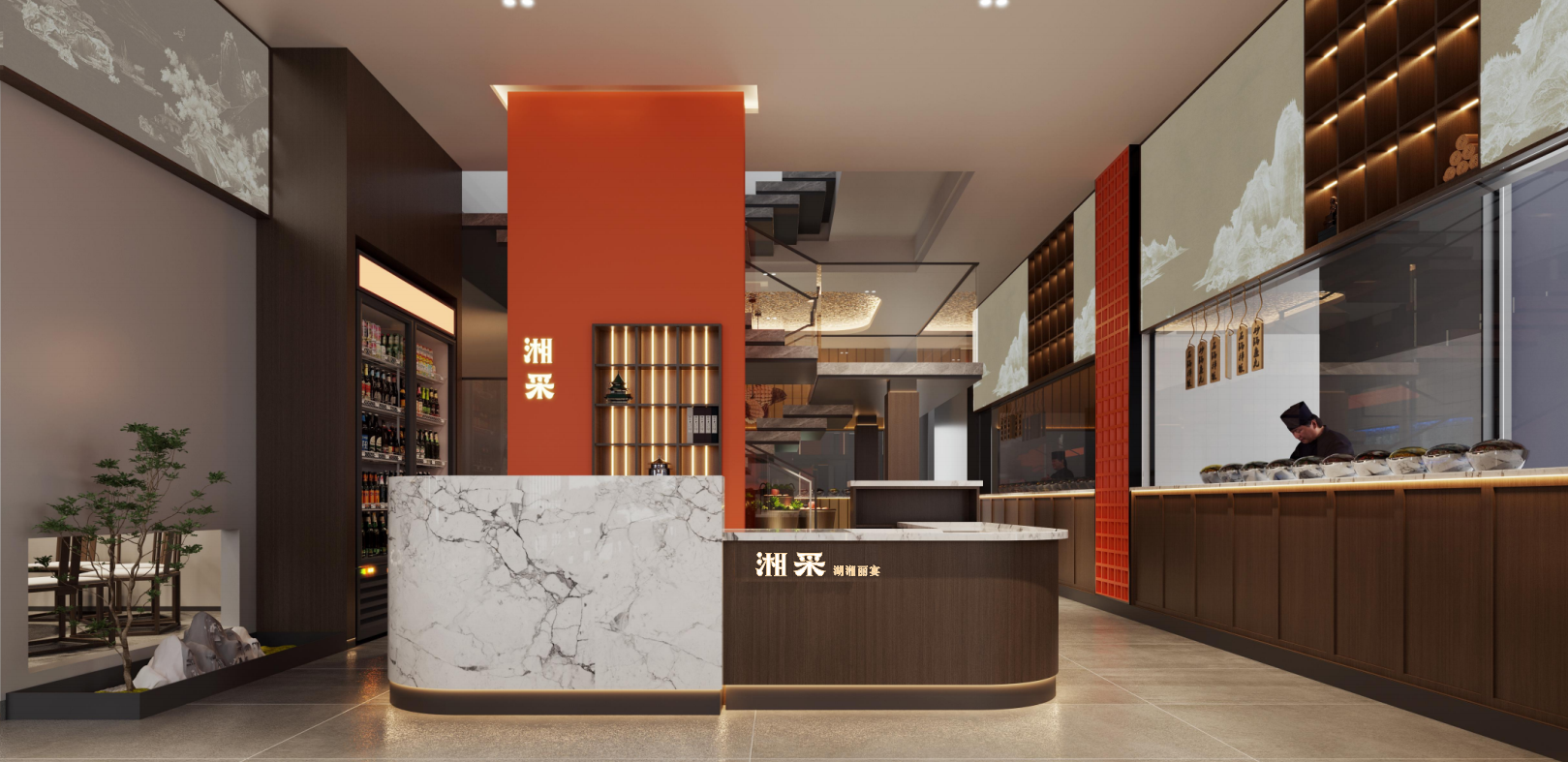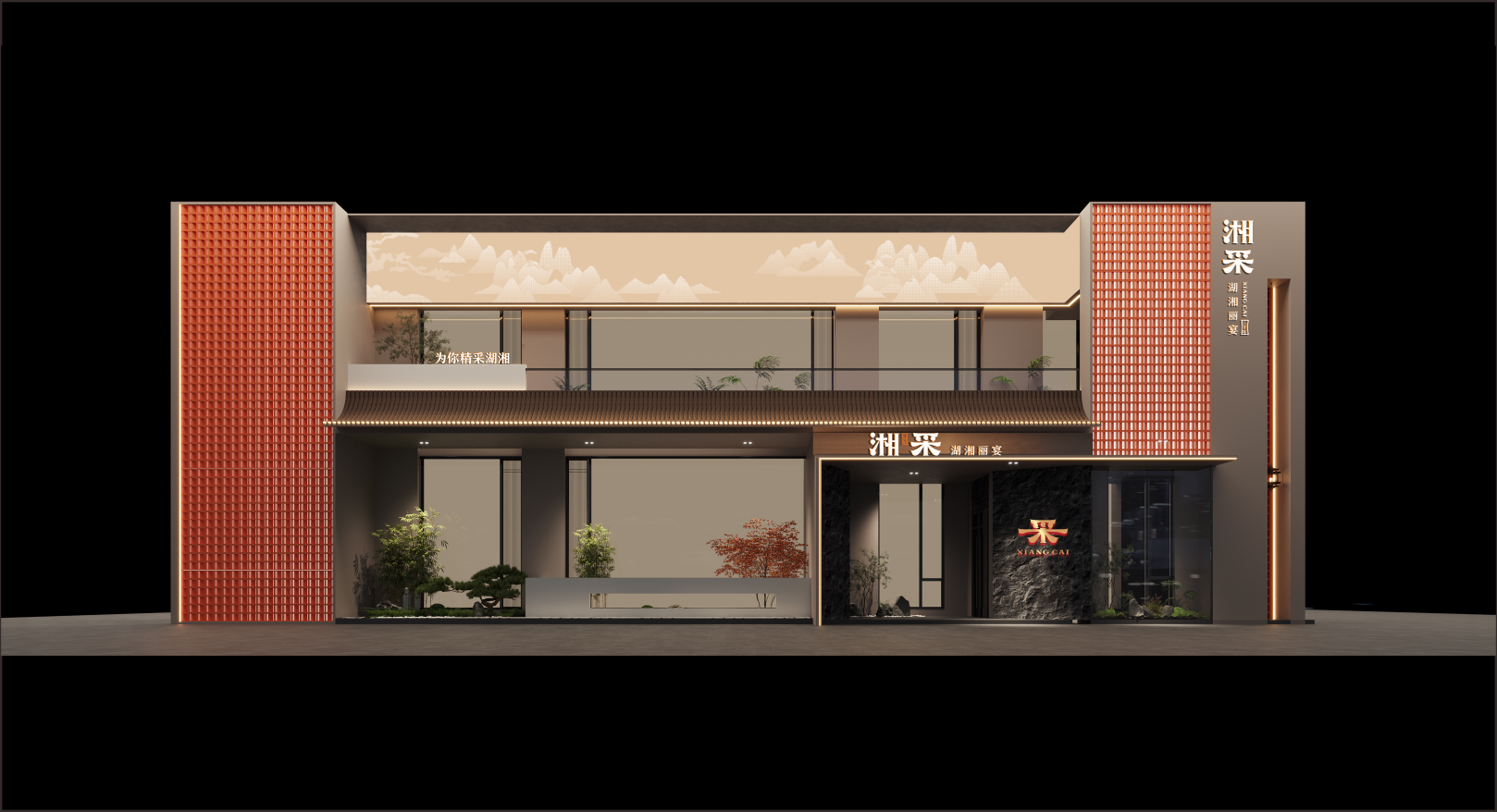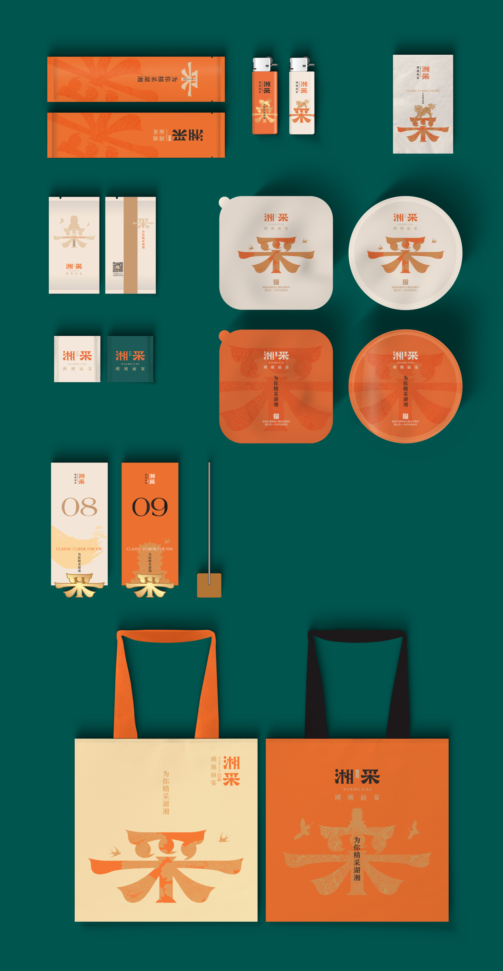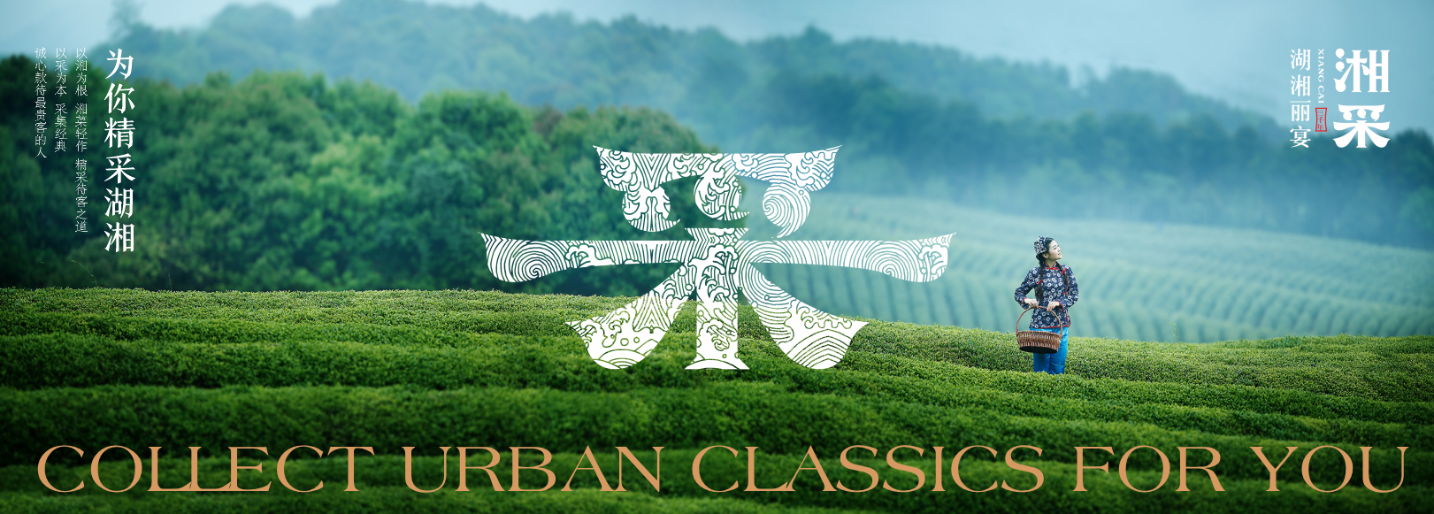 “湘采.湖湘丽宴”这一品牌命名既能代表湘菜,又能用“采”表示采集其他优势菜系与产品,又有财意,包容性十分强。“丽宴”丰富进店动机,放大品类识别。“精采经典,湘当精采”作为品牌名称释义,可以看出湘采以采集智慧、荟聚经典的角度给周边人士湖湘特色。采集食材源产地,传承的智慧,经典的口味秘法,永恒不息的创新。我们希望以一种新奇角度诠释湘菜,展现品牌。