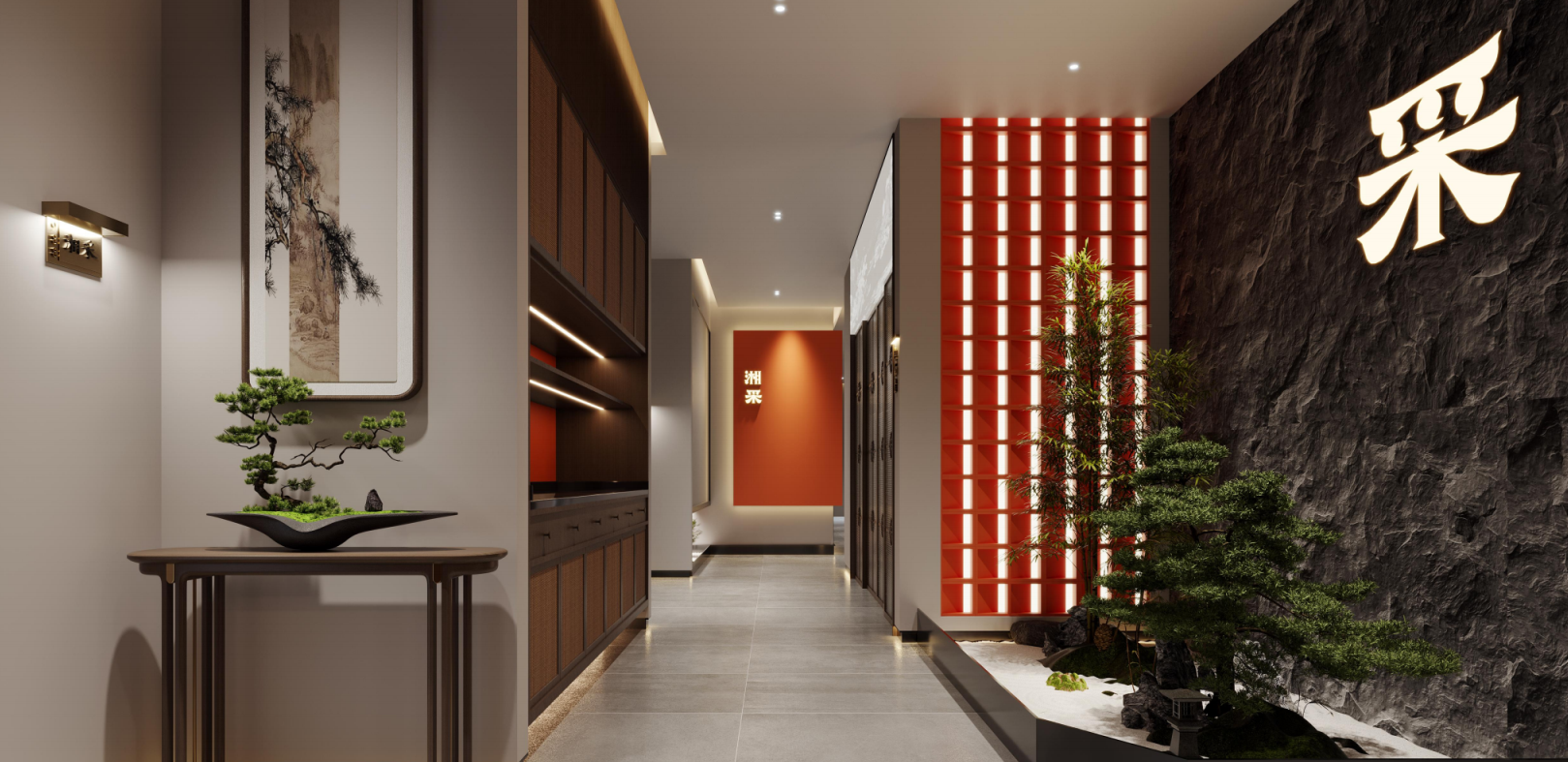 门店的空间设计角度同样如此,整个空间大面积运用古朴原木、磨石等等材质,多处室内造景增加沉浸式体验。让用餐不仅是食物体验,更创造出轻简约美学的时尚体验氛围。配合明厨亮灶现炒现切,看得见的品质与匠心,新鲜热闹之感铺面而来。