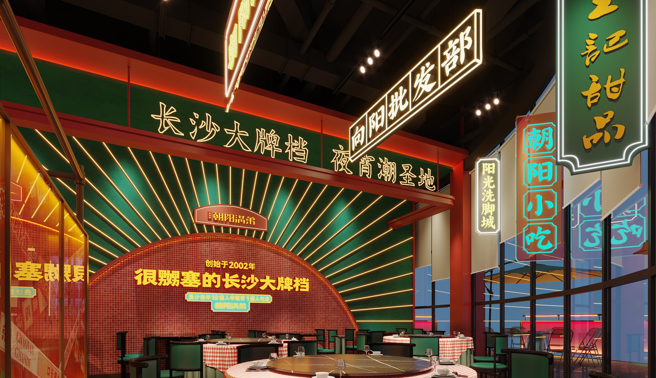 品牌文化与长沙城市标签做联动,围绕朝阳街区,建立配称内容。“长沙朝阳街,夜宵潮圣地”将朝阳满弟打造成一个时尚年轻潮流的美食文化室内街区,迎合夜宵业态场景化消费趋势,让场景成为一种新产品。