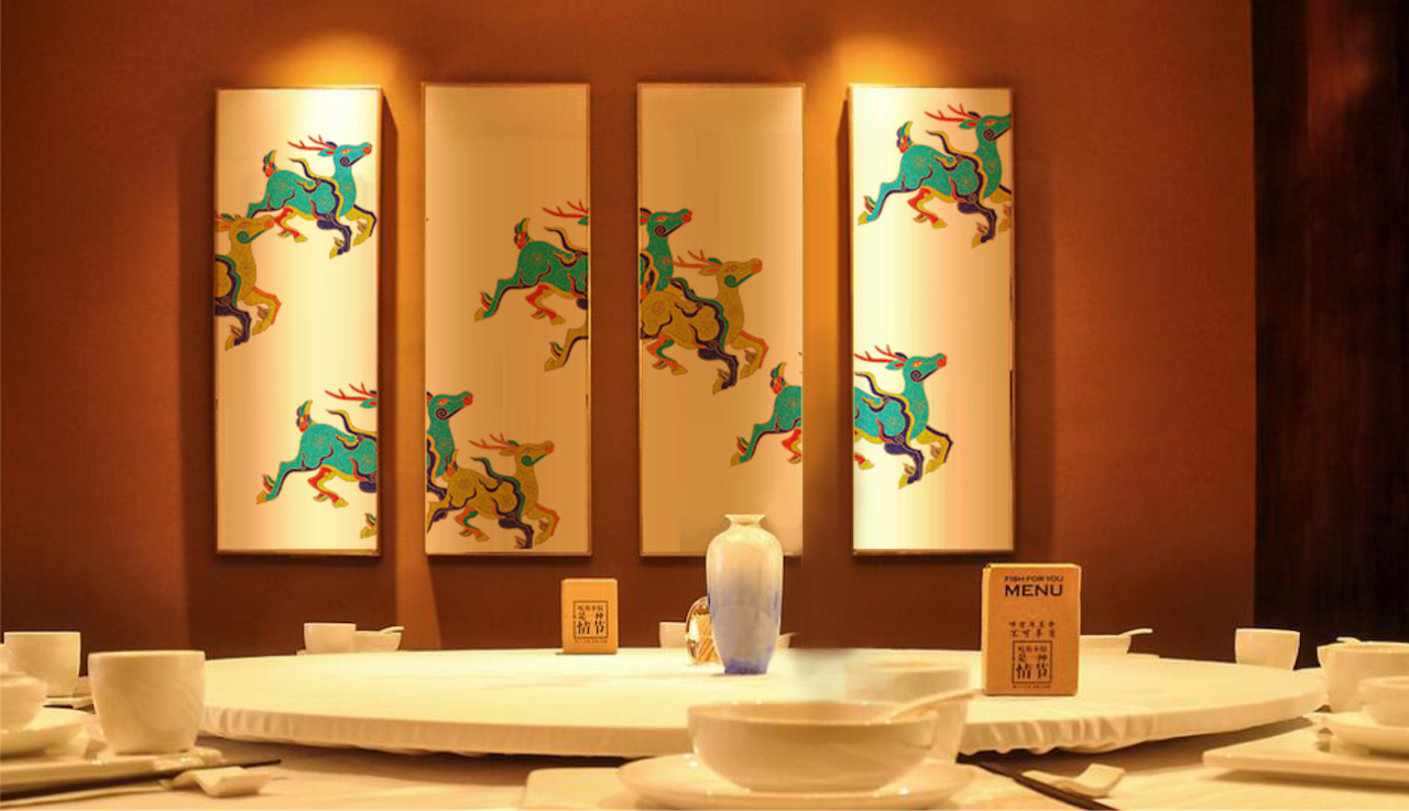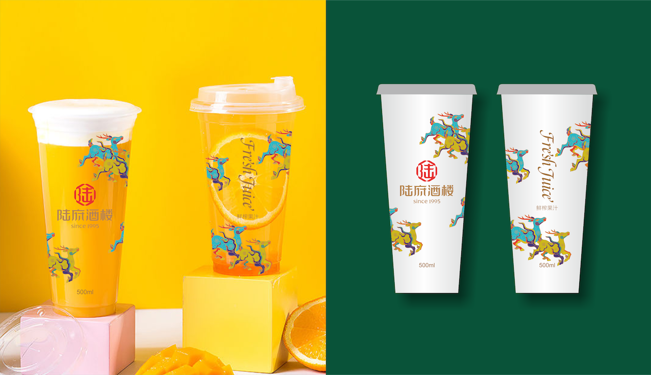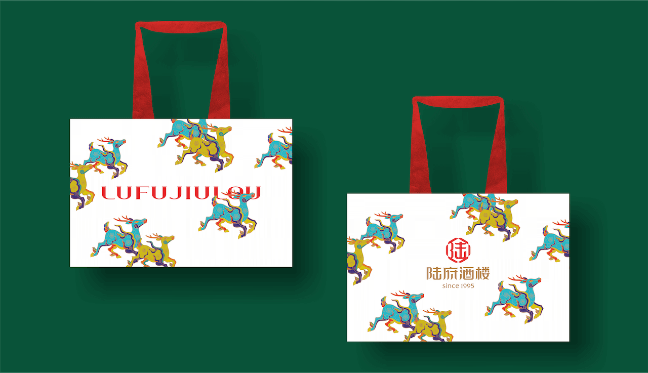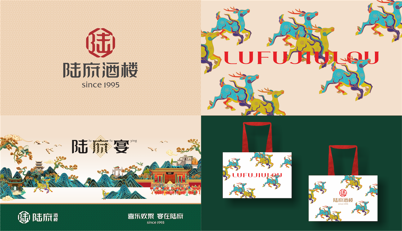 除此之外,我们以“鹿”为原型,取“禄福”之意,塑造陆府酒楼专属图腾,让陆府酒楼品牌IP化,获得更强的识别性。