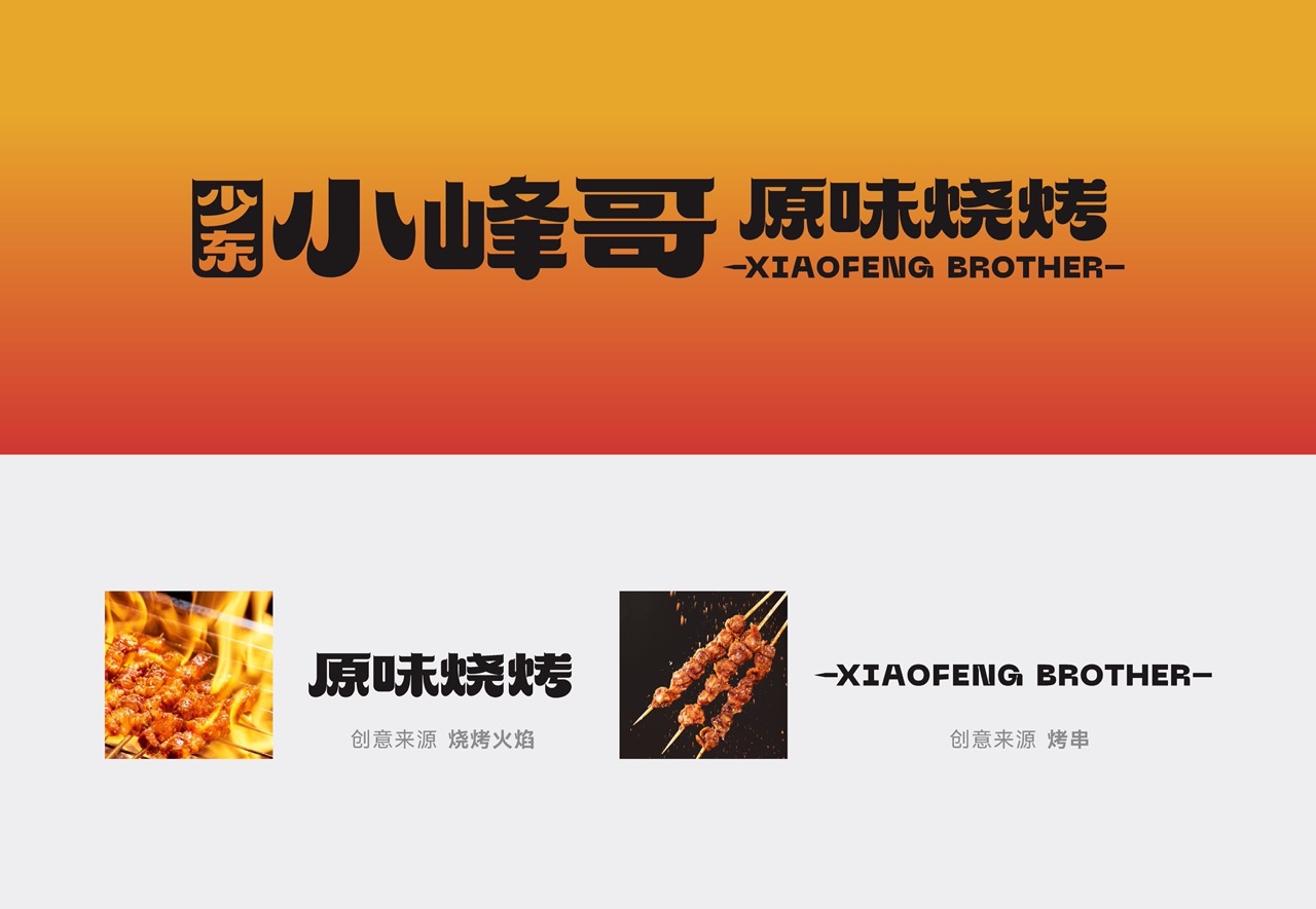 品牌字体三要素:识别度高+耐看不易过时+体现品牌气质。由此我们将火焰元素抽离与字体进行创新融合,尾端的上翘宛如熊熊燃烧的火焰一般,英文火焰形字体笔触+竹签元素,传递“炭火直烤”的鲜活感。