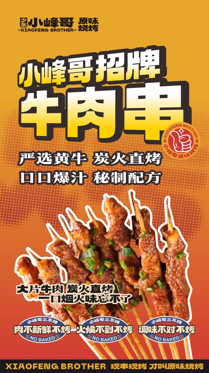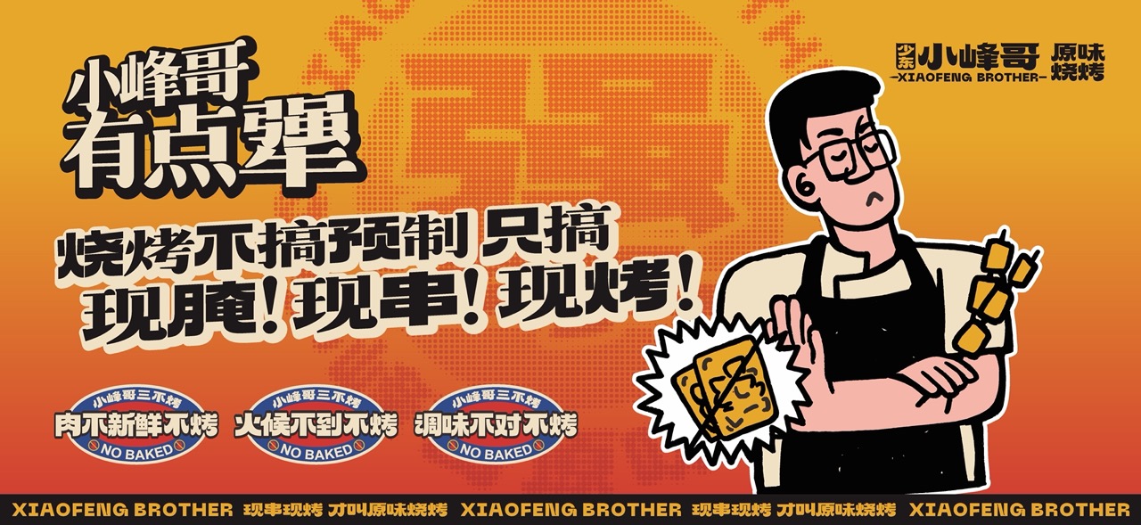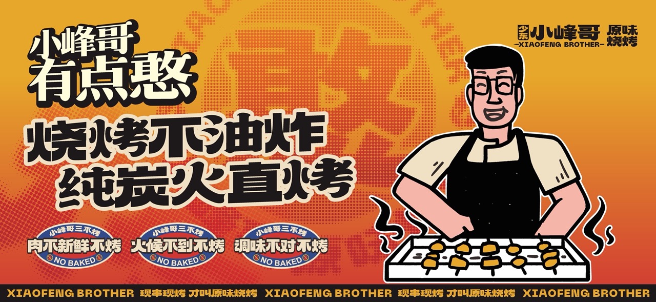 品牌代言:小峰哥“自学创业、亲串亲烤”的草根故事,塑造“烧烤匠人”人设;